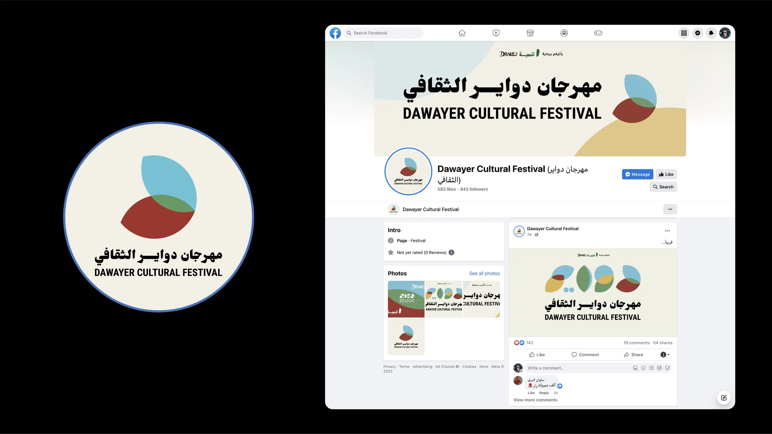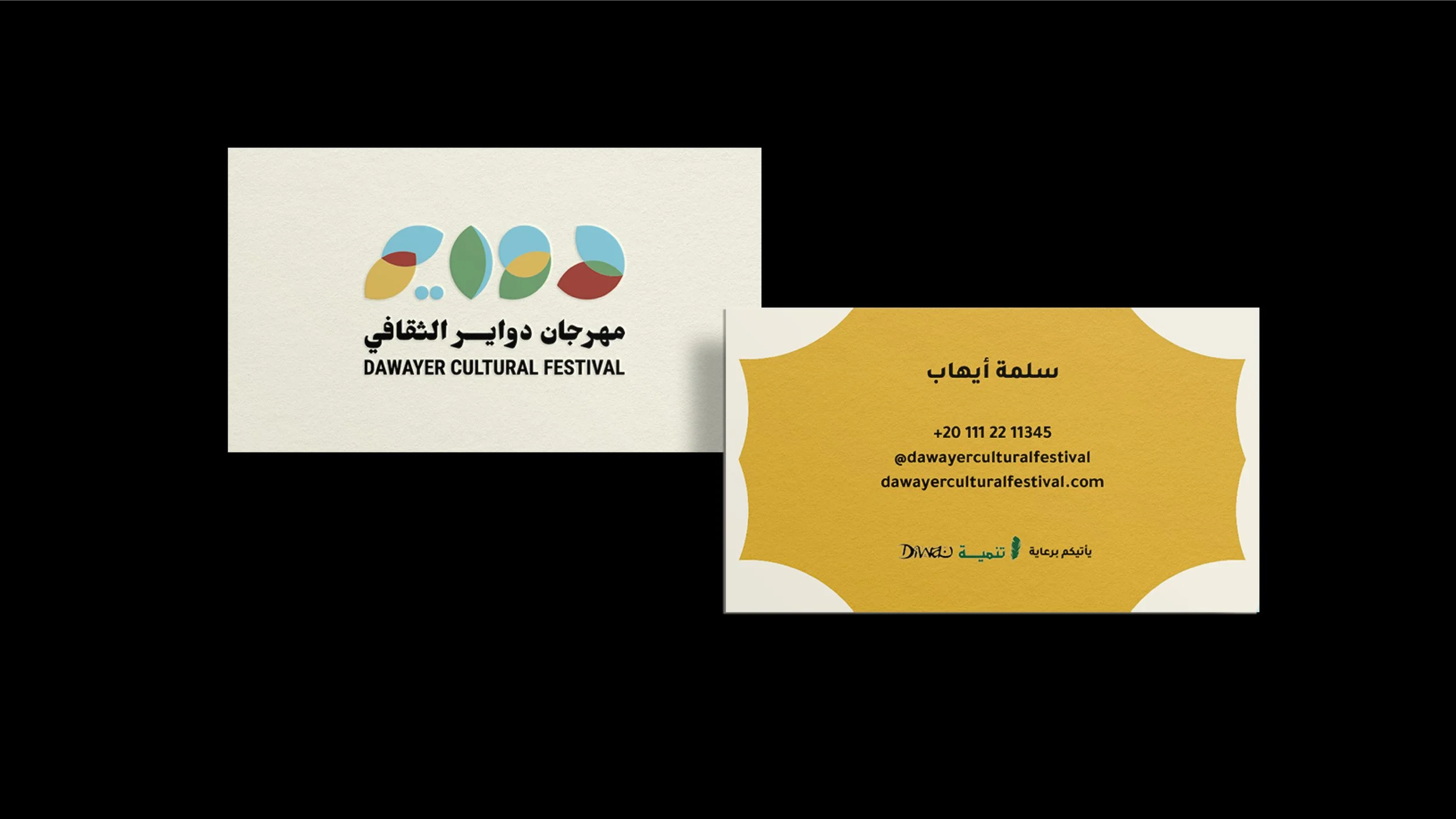 A key part of the festival is the carefully designed visual identity created by me, with Ayman Khaled contributing to the logo concept. The logo represents the ongoing flow of knowledge and reflects the meaning of Dawayer, which means circles in Arabic.